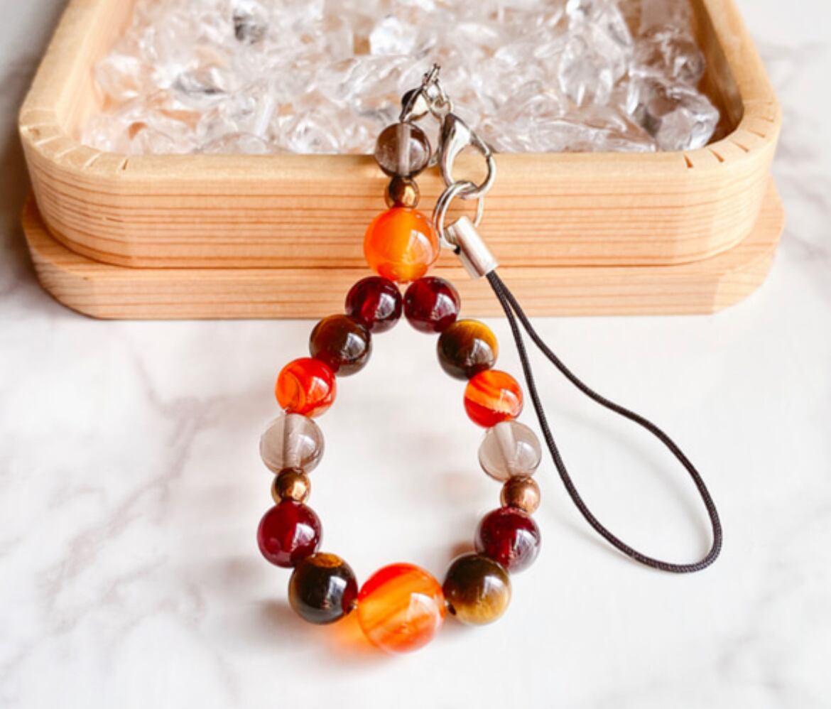✦ 【再販60点突破】思い通りに人生を前向きに変える 天然石ストラップ|カーネリアン・タイガーアイ・ガーネット No.23