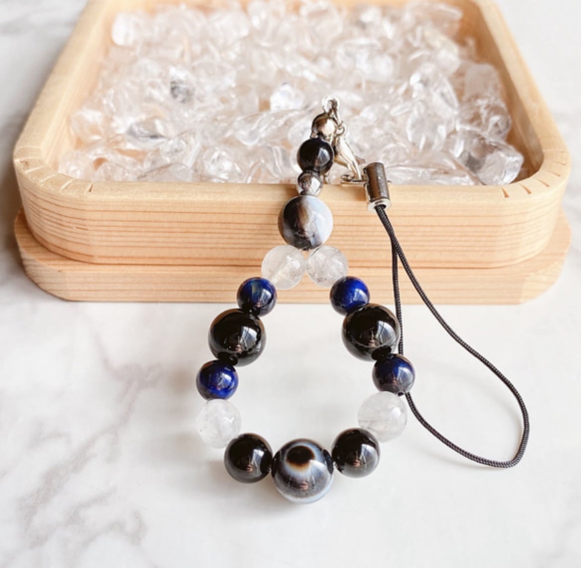 ✦ 【再販30点突破】静かな強さを宿す 天然石ストラップ|天眼石・オニキス・ブルータイガーアイ No.29S
