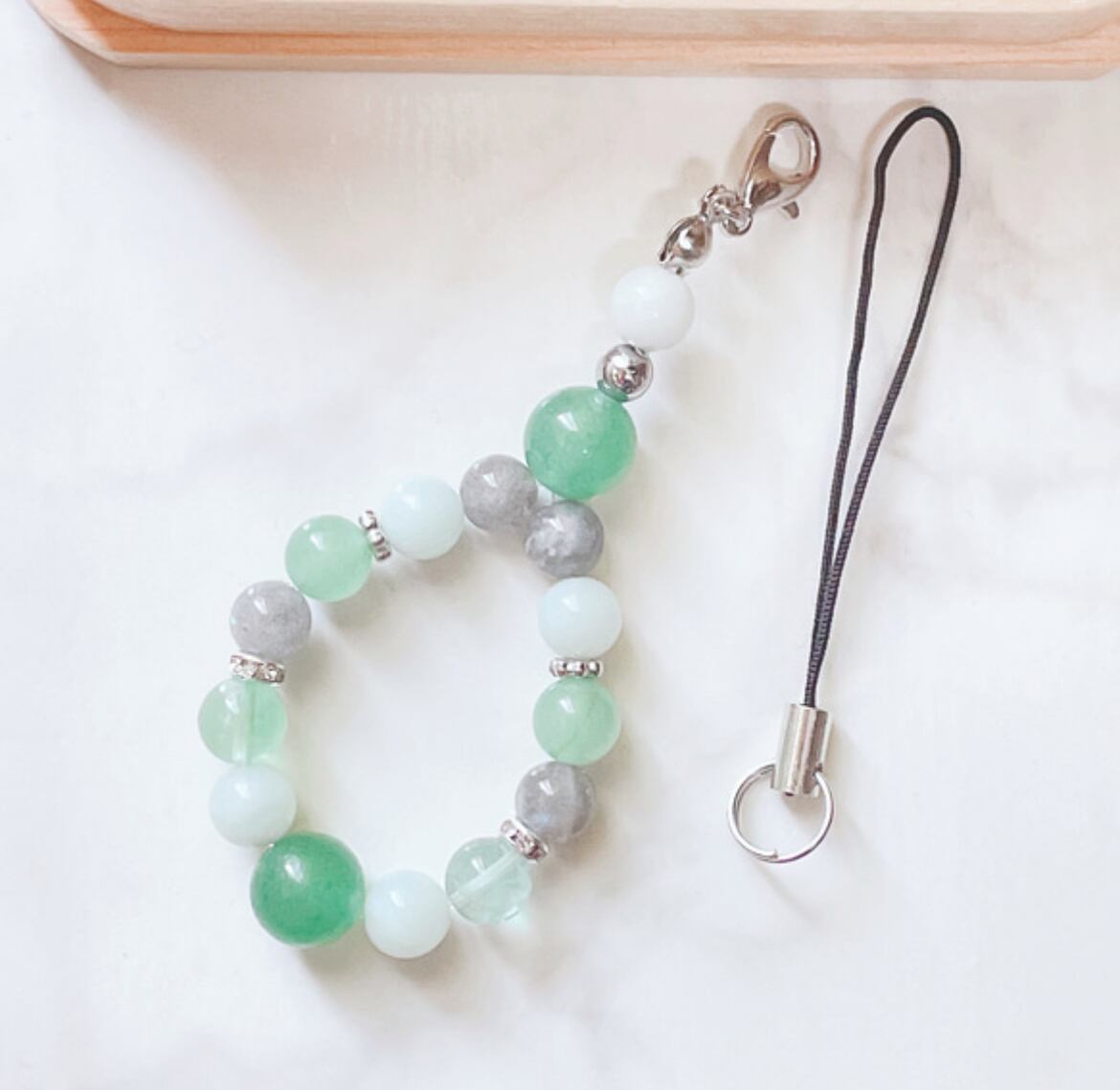 ✦ 【再販15点突破】穏やかな調和と安らぎを◎ 天然石ストラップ|アベンチュリン・アマゾナイト・ラブラドラ No.108S