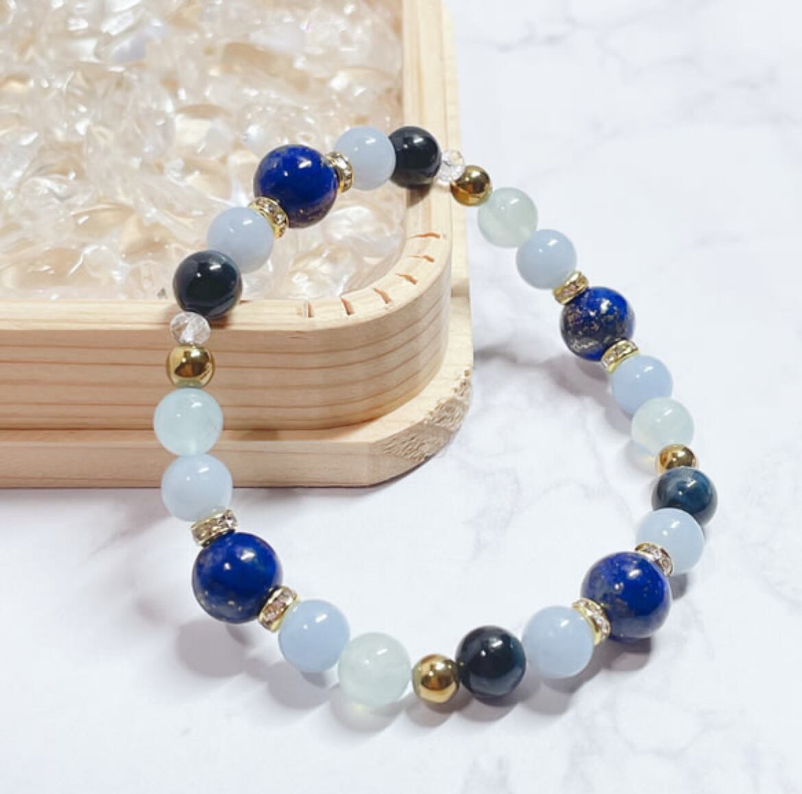 ✦ 【再販30点以上】自分や周りの人を大切にする 天然石ブレスレット|ラピスラズリ・エンジェライト・アクアマリン No.94