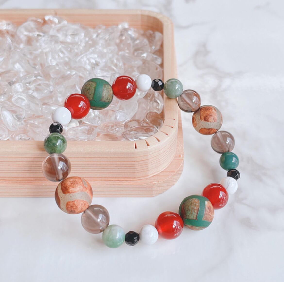 ✦ 【再販30点以上】生命の循環を象徴する亀甲長寿天珠ブレスレット|赤メノウ・スモーキークォーツ・ハウライト No.409