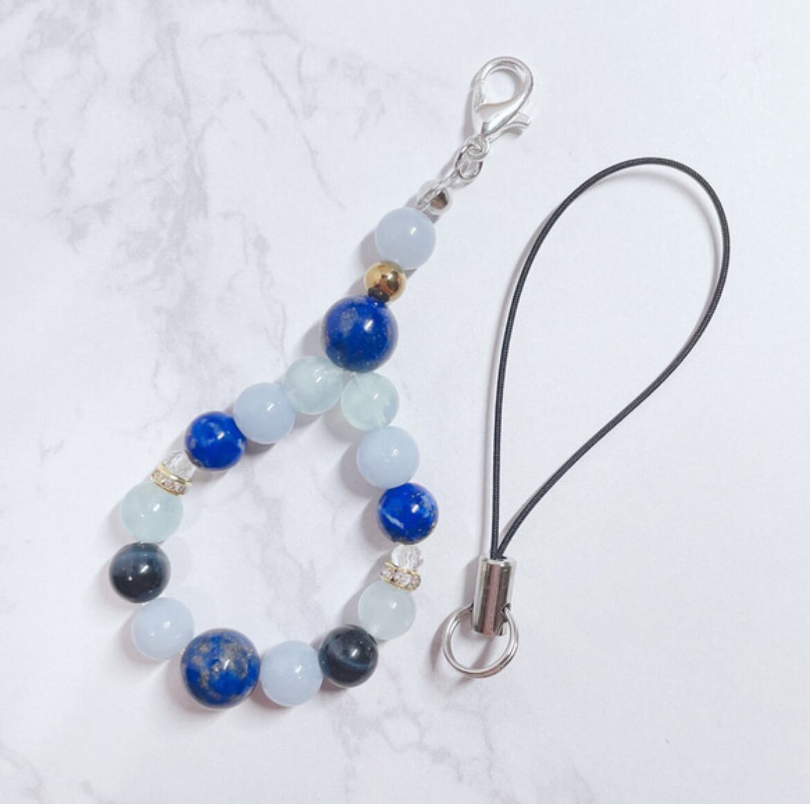 ✦ 自分や周りの人を大切にする 天然石ストラップ|ラピスラズリ・エンジェライト・アクアマリン No94S