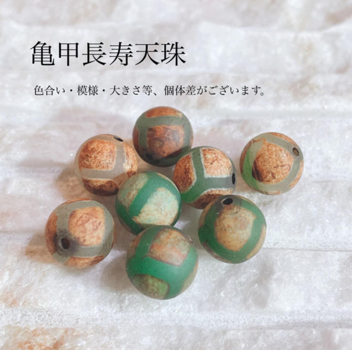 主役は、緑豊かな大地を思わせる亀甲長寿天珠。