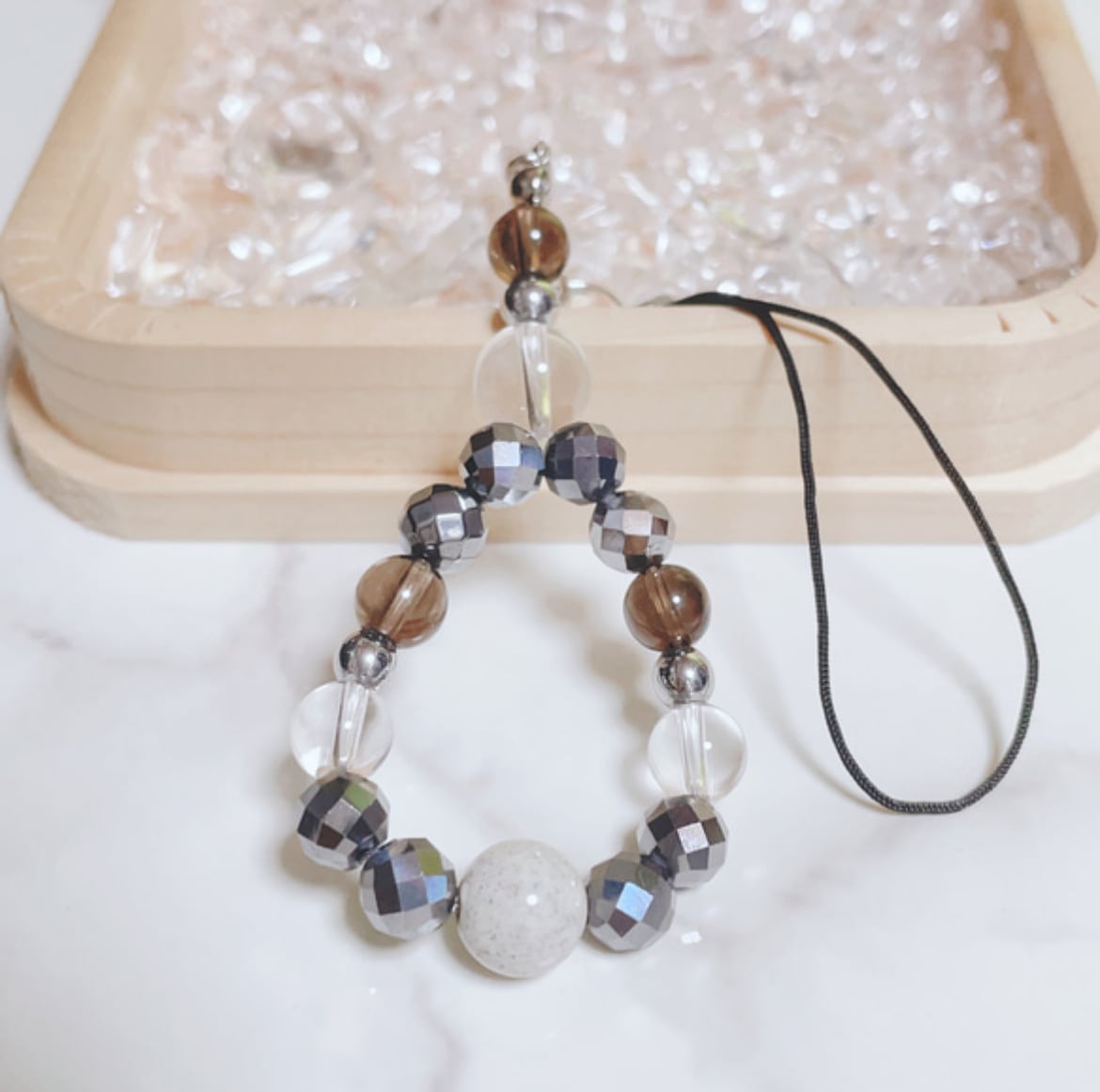 天然石ブレスレット 天然石ストラップ 北投石 テラヘルツ鉱石 スモーキークォーツ 癒しブレスレット 守護 安定 キラキラ 調和アクセサリー 穏やか グラウンディング スマホストラップ ハンドメイドアクセサリー レディースアクセサリー ギフト プレゼント