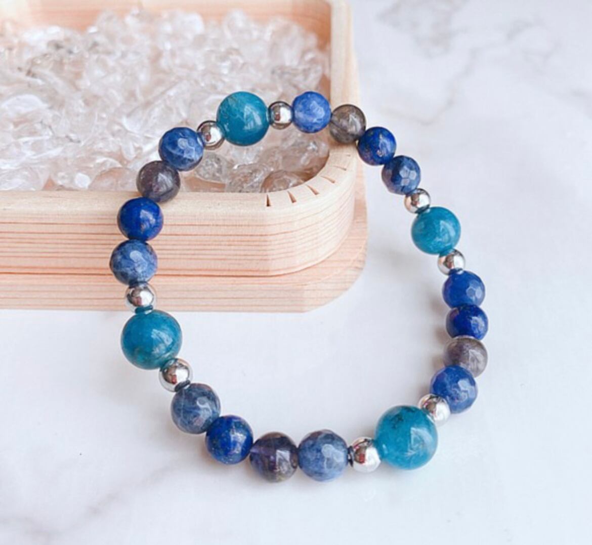 天然石ブレスレット 天然石ストラップ アパタイト アイオライト ソーダライト ラピスラズリ 星の神話 直感 洞察 選択 癒しストラップ 受験 青 ブルーアクセサリー ギフト プレゼント