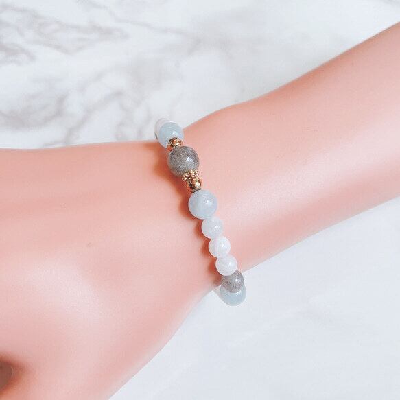 天然石ブレスレット ラブラドライト アクアマリン ムーンストーン 3月誕生石 出会いブレスレット 癒しアクセサリー 上品デザイン ギフト 誕生日プレゼント 女性向けアクセサリー 穏やかブレスレット 数珠 ナチュラルカラー