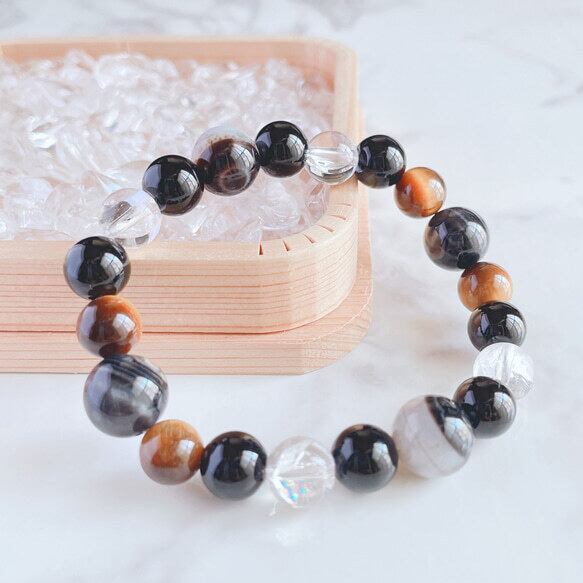 ✦ 悪しき流れを祓い 新しい光へ導く 天然石ブレスレット|天眼石・モリオン・タイガーアイ・アイリスクォーツ No.515