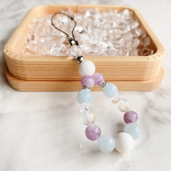 ✦ 希望と勇気を持ち前向きに◎天然石ストラップ|アクアマリン・ラベンダー・レインボー No323S