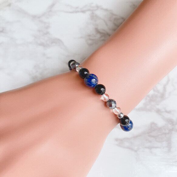 ✦ 静かな強さで日々を整える 天然石ブレスレット|ラピスラズリ・テラヘルツ・モリオン・ヘマタイト No.121
