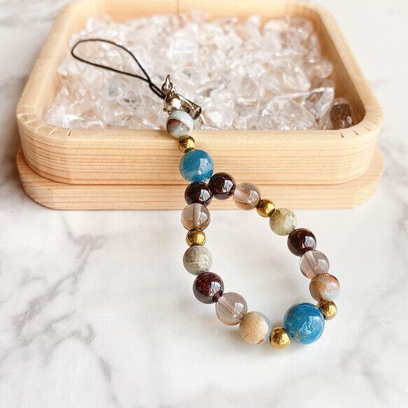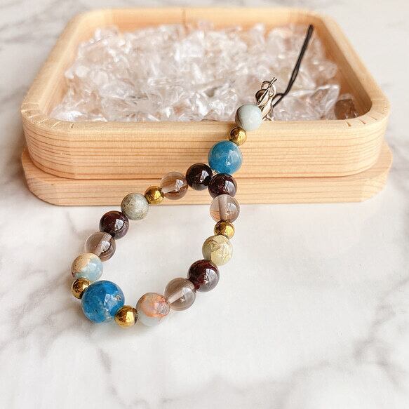 ✦ 【再販20点以上】最高の人間関係を築く 天然石ストラップ|アパタイト・ガーネット・インプレッションストーン No17S