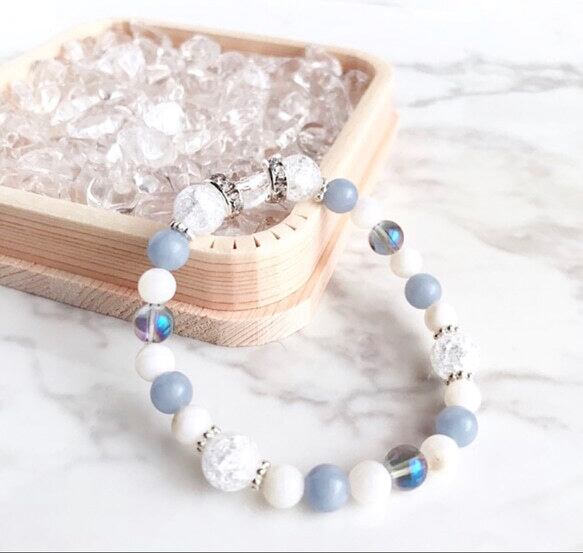 天然石ブレスレット 天然石アクセサリー 数珠 ハンドメイドアクセサリー エンジェライト マザーオブパール アクアオーラ 水晶 穏やか やさしさ 母性 癒し 安心感 育児ママ 女性 レディース ギフト プレゼント