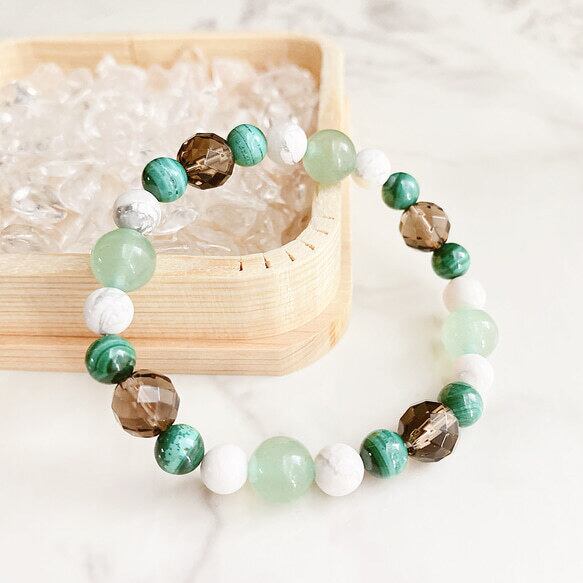 天然石ブレスレット 天然石ストラップ スモーキークォーツ マラカイト アベンチュリン ハウライト 癒しブレスレット 数珠 自分を大切に ナチュラルカラー 男女兼用アクセサリー 緑 グリーン ストレスケア 誕生石アクセサリー 贈り物ギフト 誕生日