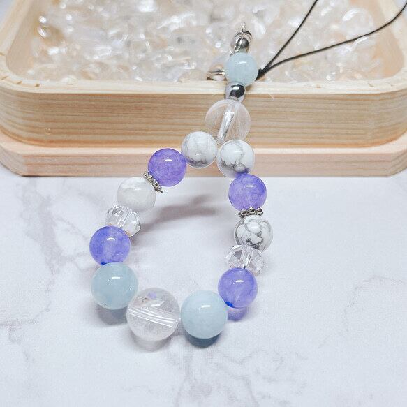 ✦ 過去をリセットし、純粋な心へ 天然石ストラップ|ヒマラヤ水晶・アクアマリン・ハウライト No694S