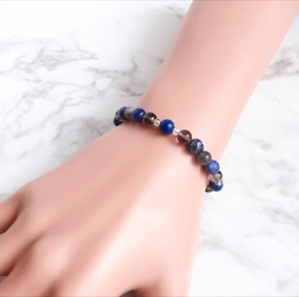 天然石ブレスレット 天然石アクセサリー 数珠 ハンドメイドアクセサリー ラピスラズリ ラブラドライト ソーダライト スモーキークォーツ 水晶 知恵 思考を整える 夢を形にする 冷静 前向き 落ち着き 男女兼用 プレゼント