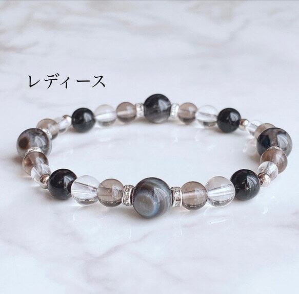✦ 【再販30点以上】 困難を跳ね返す 静かな力 天然石ブレスレット|天眼石・モリオン・水晶(ペアセット) No.88
