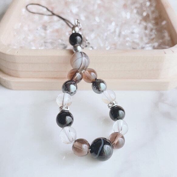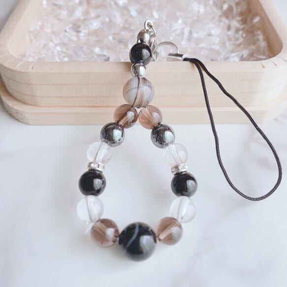 ✦ 【再販25点以上】 困難を跳ね返す 静かな力 天然石ストラップ|天眼石・モリオン・水晶 No88S