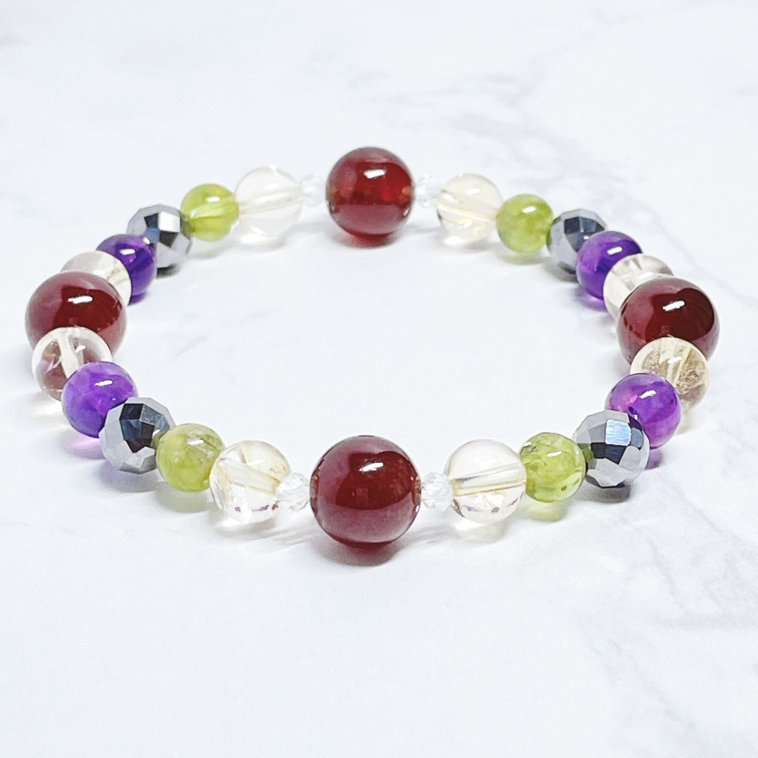 ✦ 疲れた心に元気を取り戻す|オレンジガーネット・シトリン・アメジスト・ペリドット 天然石ブレスレット/パワーストーンブレスレット No843