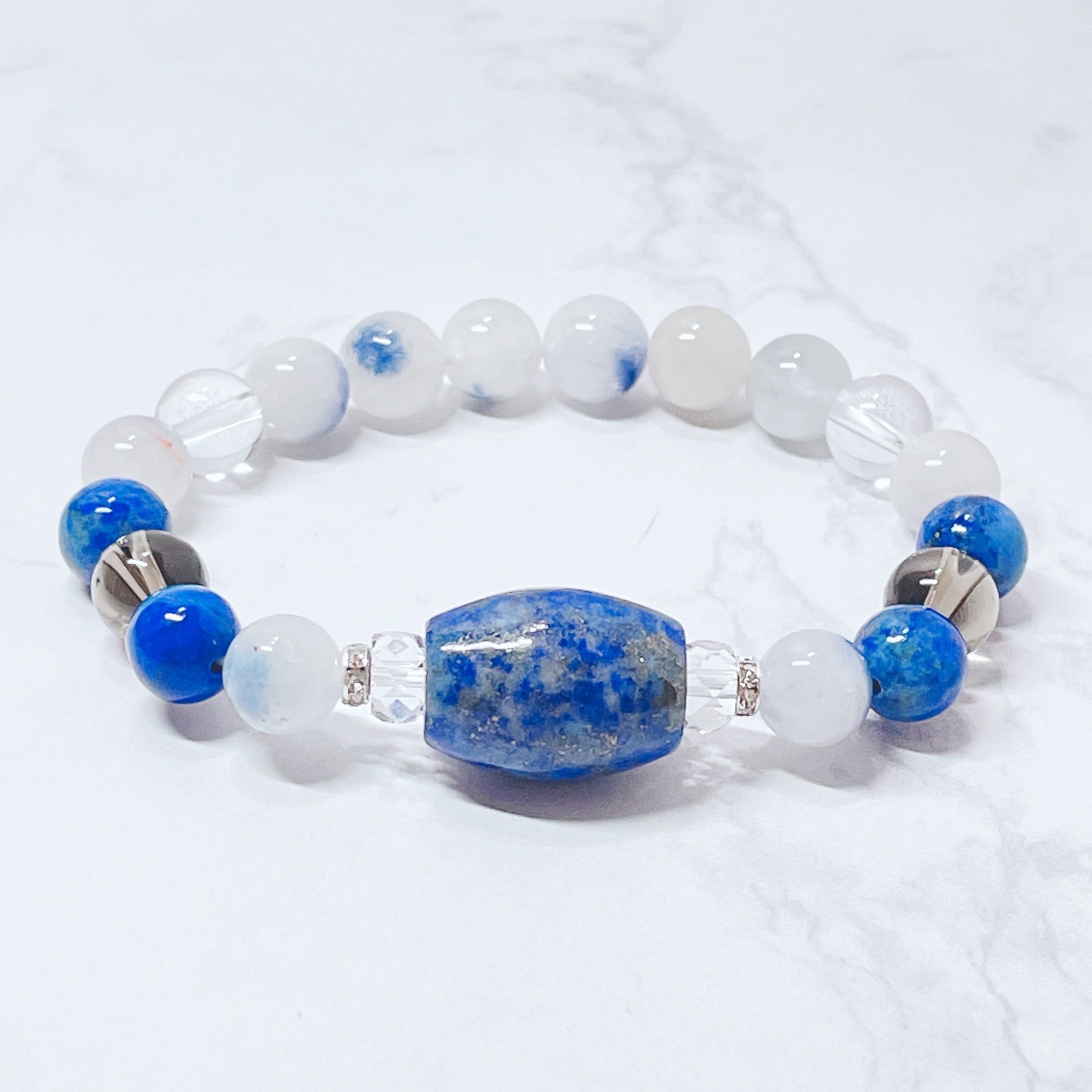 ✦数量限定✦心の迷いや停滞を解きほぐす 天然石ブレスレット|ラピスラズリ・デュモルチライトインクォーツ /パワーストーンブレスレット No.847