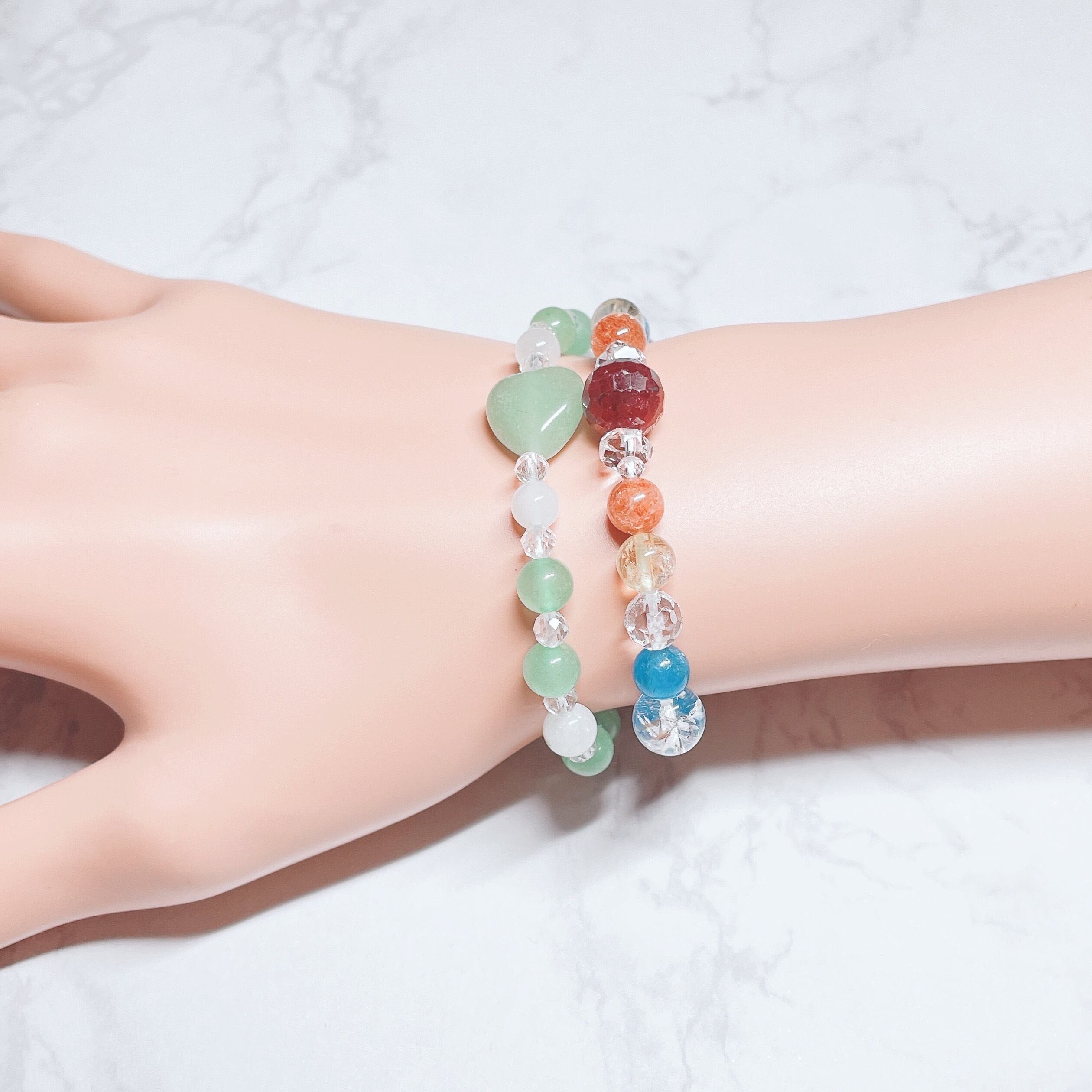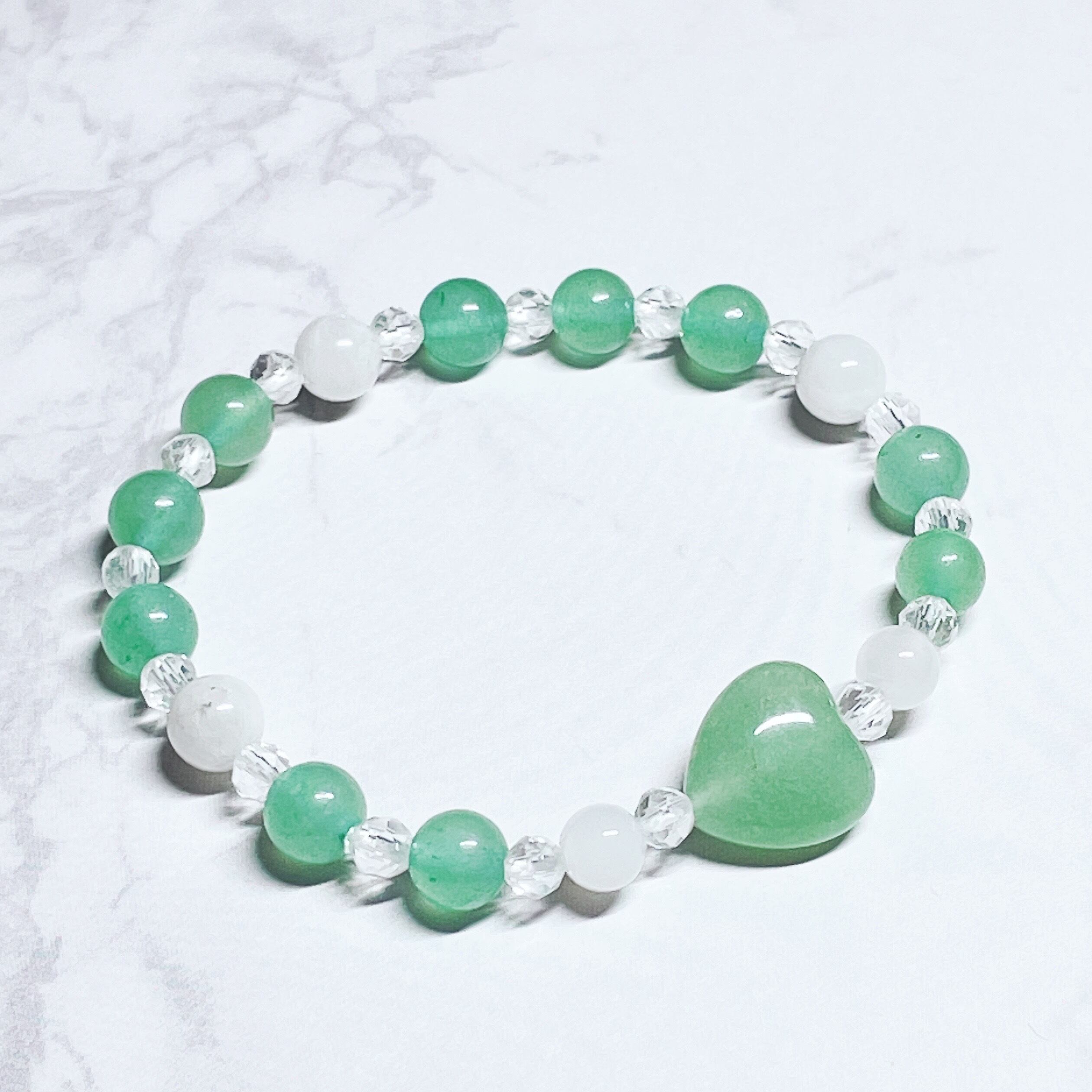 ✦心に安らぎと穏やかさをもたらす 天然石ブレスレット|ハートアベンチュリン・ムーンストーン パワーストーンブレスレット No.849
