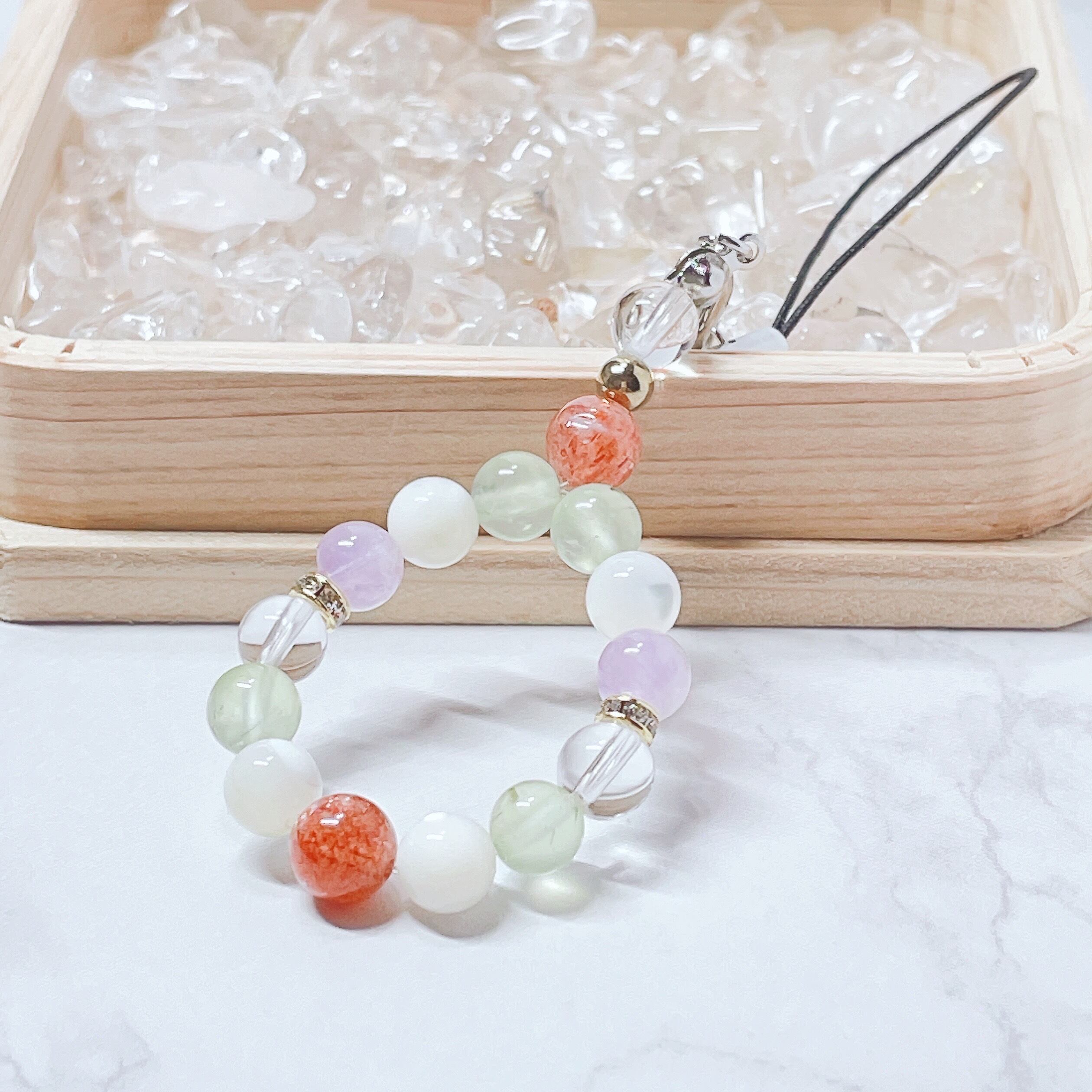 ✦頑張ってきた自分へのご褒美として♪誕生日・退職祝いにも◎ 天然石ストラップ|マイカストーン・プレナイト /パワーストーンストラップ No.850S