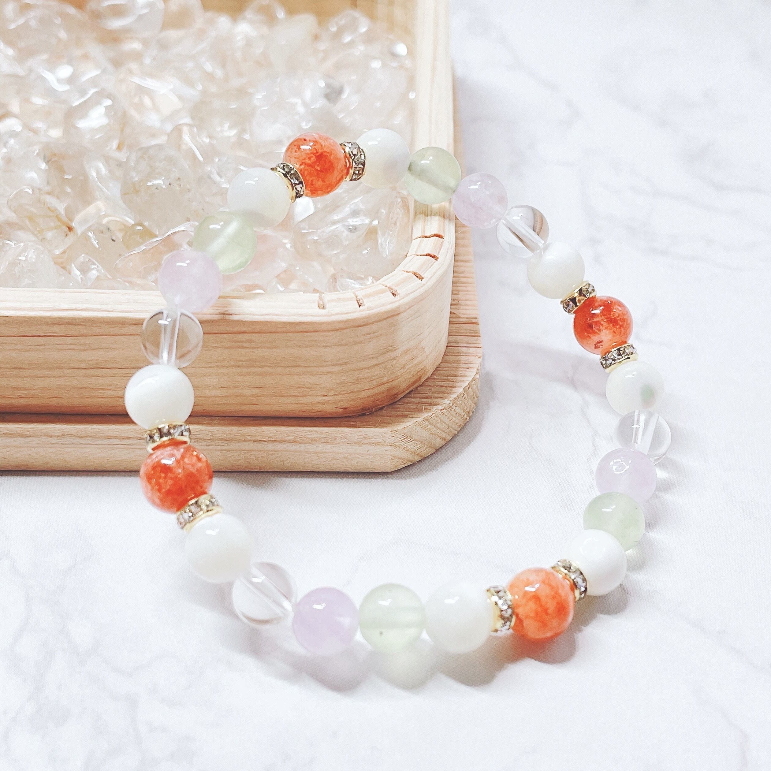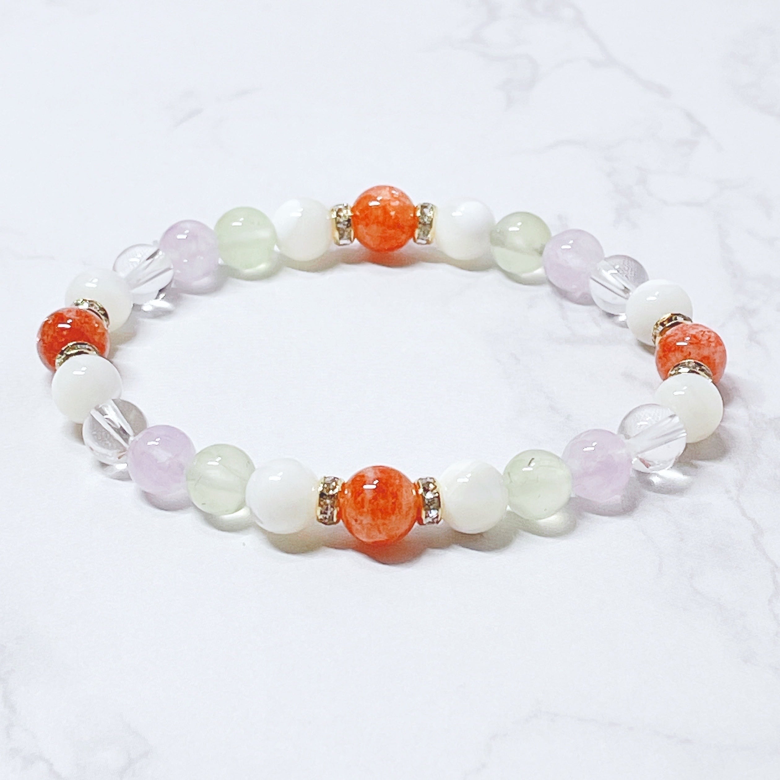 ✦頑張ってきた自分へのご褒美として♪誕生日・退職祝いにも◎ 天然石ブレスレット|マイカストーン・プレナイト/パワーストーンブレスレット No.850