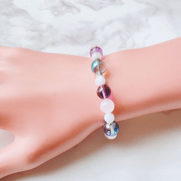愛と癒しを大切にしたい方へ 恋愛や人間関係に◎ 天然石ブレスレット パワーストーンブレスレット|アクアオーラ・アメジスト No586