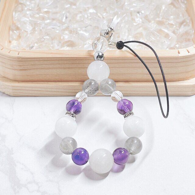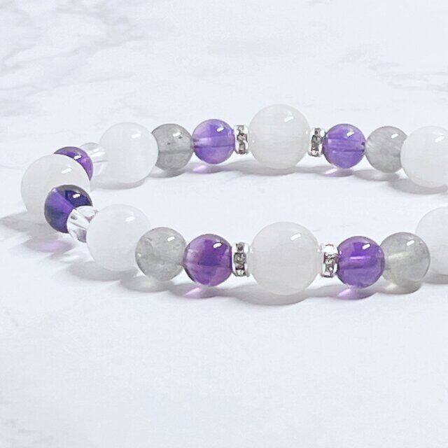 ✦天使の守護石★心安らぐ癒しの天然石ブレスレット| エンジェルクォーツ・ムーンストーン・アメジスト No779