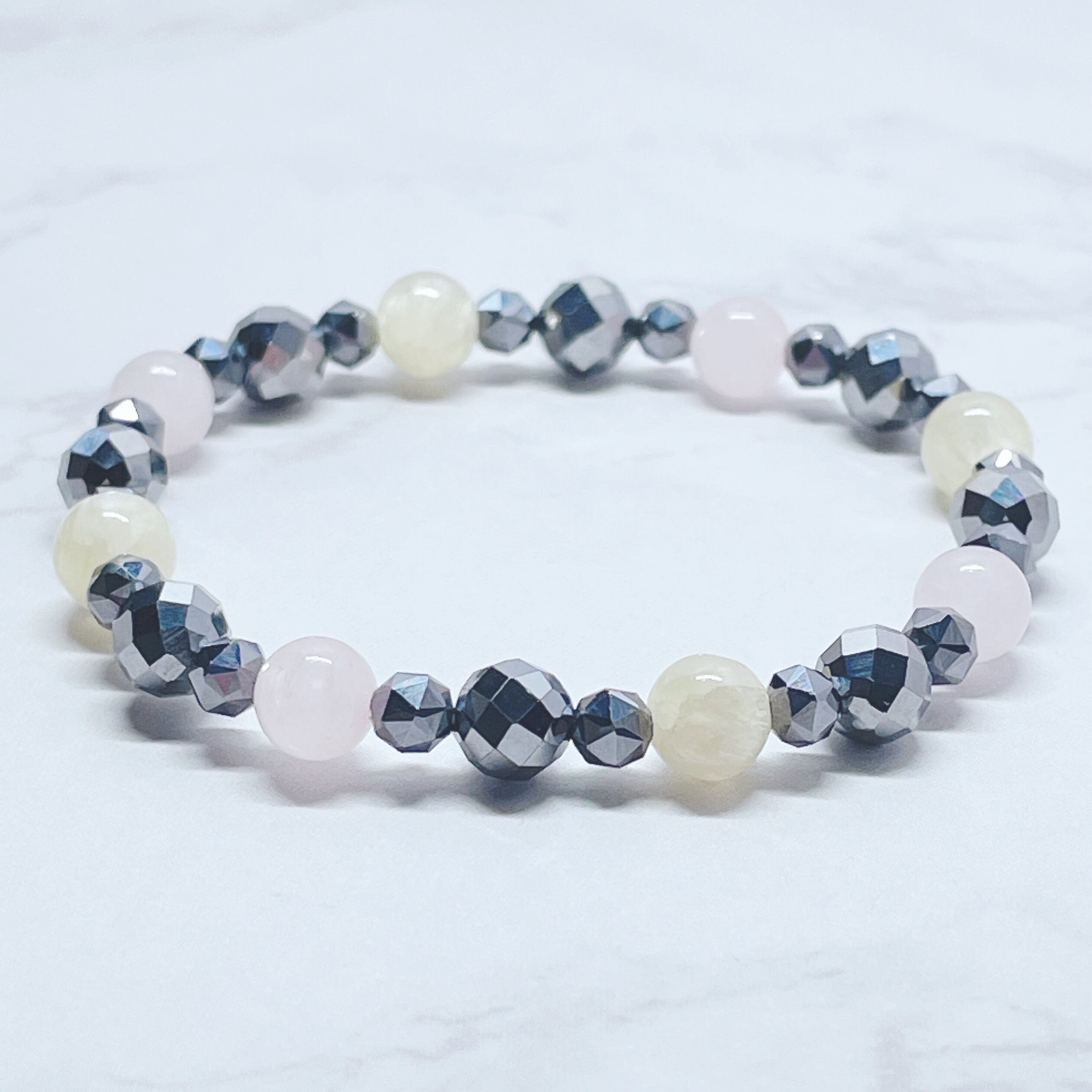 ✦ やさしさに包まれ、心をゆるめて過ごしたい◎テラヘルツブレスレット|天然石・ローズクォーツ・アラゴナイト パワーストーンブレスレット No.867