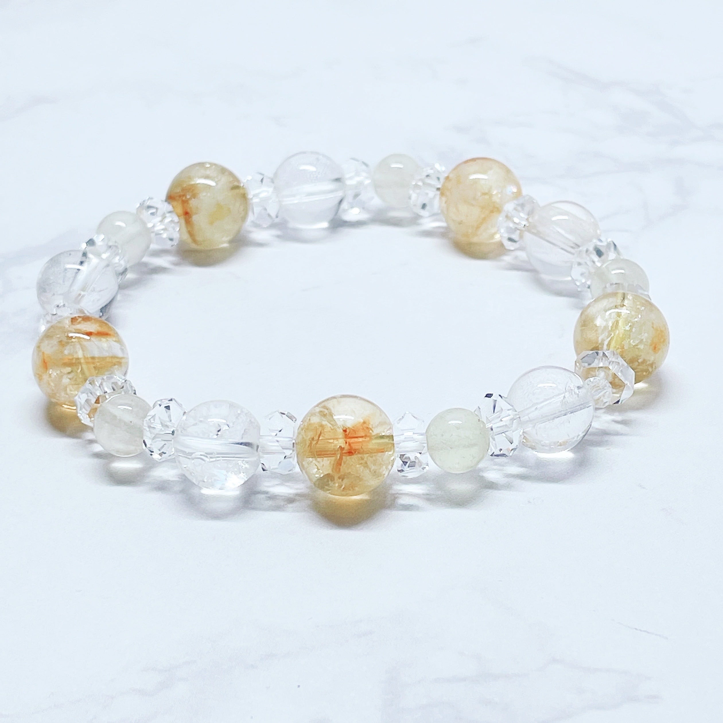✦流れを整え、自然に前へ進みたい◎天然石ブレスレット|シトリンファントム・ヒマラヤ水晶・リビアングラス No.871
