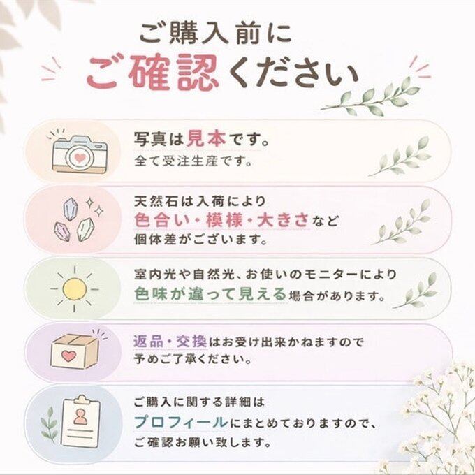 ・ 天然石は、色味・模様・クラック・