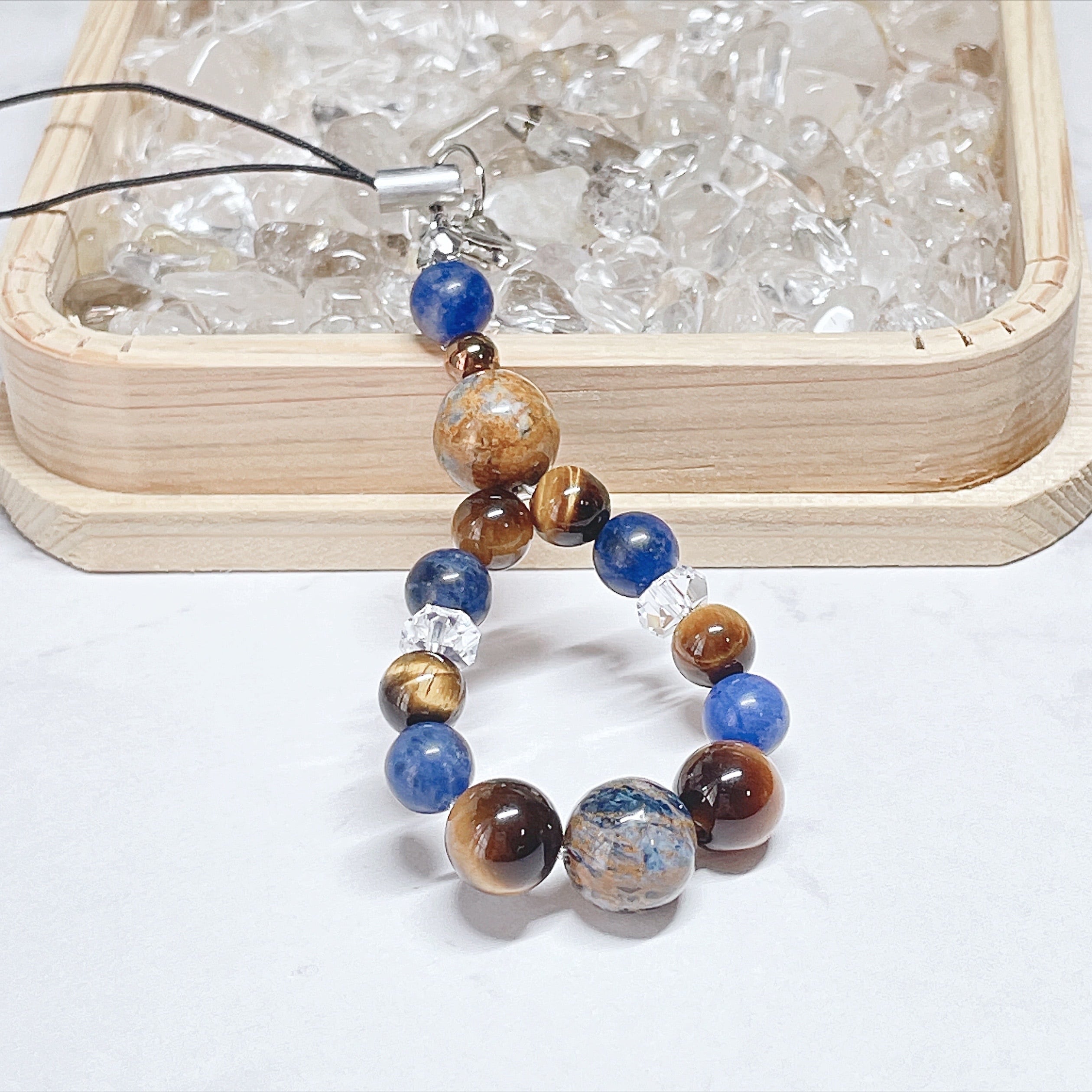 ✦数量限定✦希少!就職・転職・転勤をされた方へ◎逆境を力へ変える!天然石ストラップ|ソーダライト・ピーターサイト /パワーストーンストラップ No.884S
