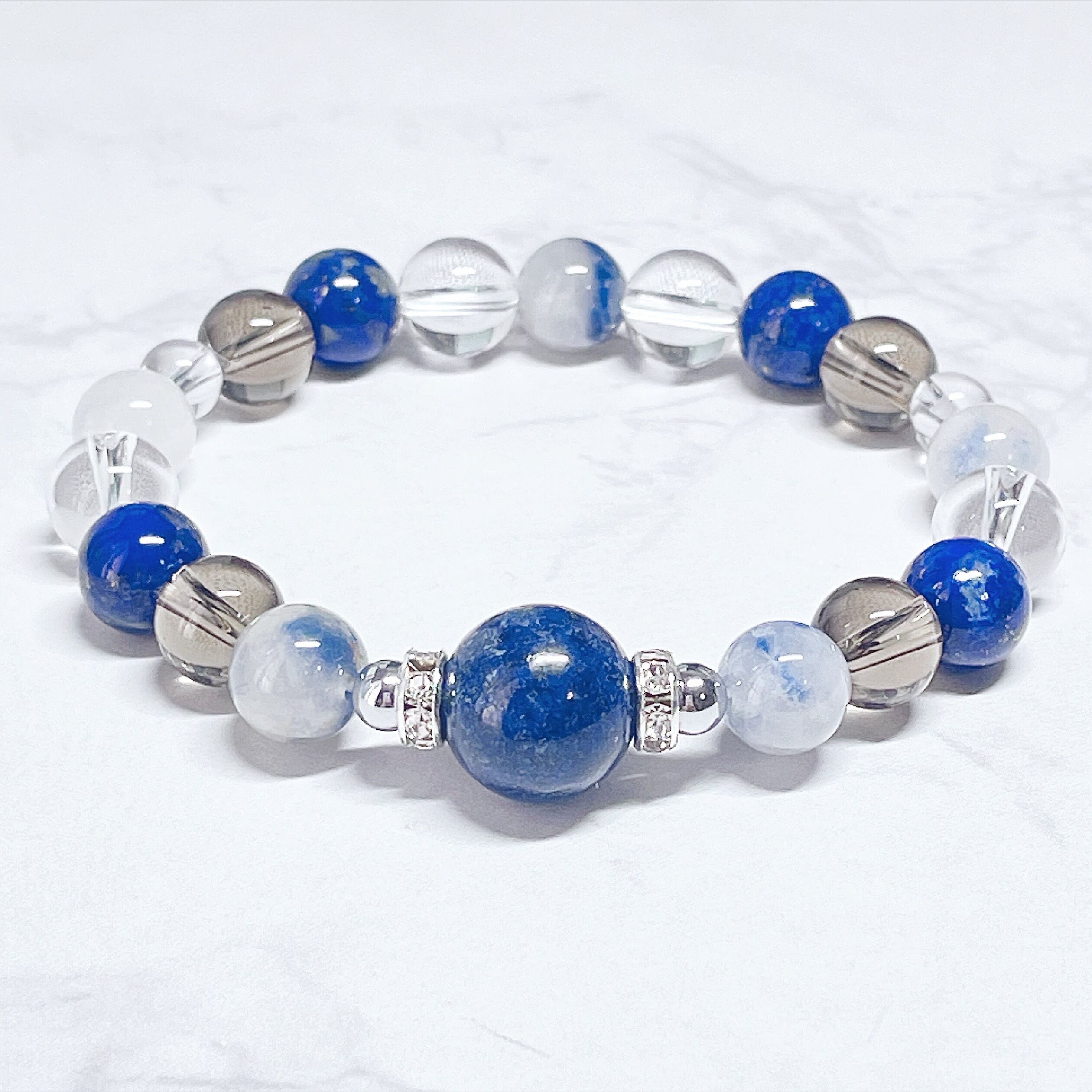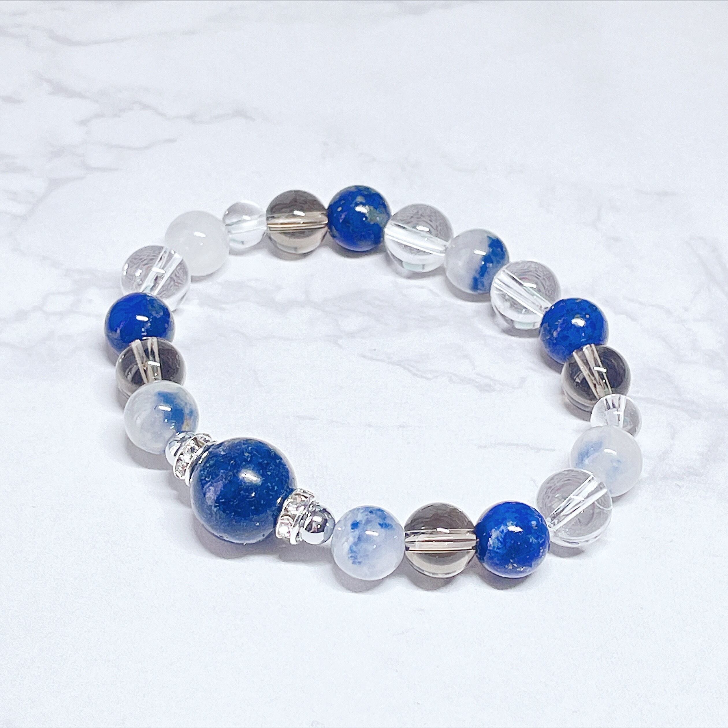✦数量限定✦ 停滞していた運気一変◎最高の幸運を掴む守護石ブレスレット|ラピスラズリ・デュモルチェライト・スモーキー 天然石ブレスレット/パワーストーンブレスレットNo.886