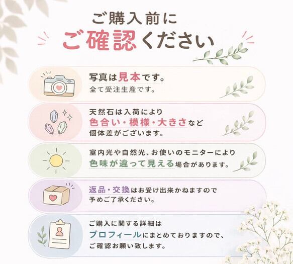 ・ 天然石は、色味・模様・クラック・